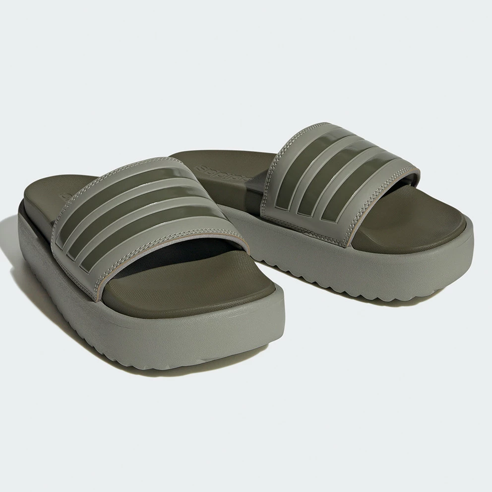 Δείξε το pedicure σου με στιλ. Αυτά τα adidas slides-πλατφόρμες έχουν λείο λουράκι στο επάνω μέρος, και τρεις χαρακτηριστικές ρίγες της adidas. Συνδυάζουν ανάγλυφο πάτο και εξωτερική σόλα από EVA που απορροφά τους κραδασμούς για απόλυτη άνεση.
